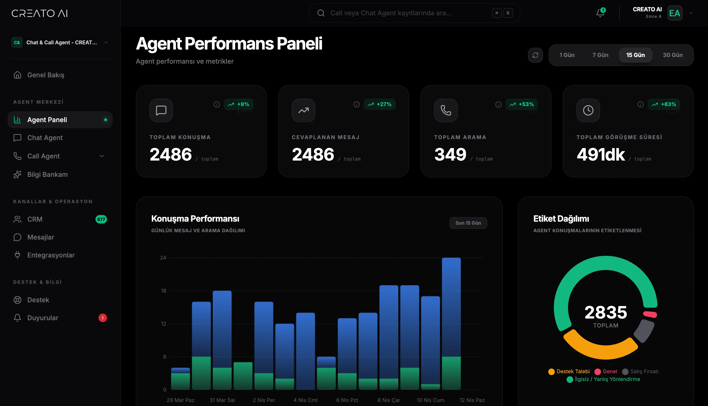 Yapay Zekâ İş Gücünüzle TanışınCREATO AI Agent sistemleri ile, her müşteri mesajı bir fırsata dönüşür. Her çağrı, bir deneyime. Her etkileşim, satışa.